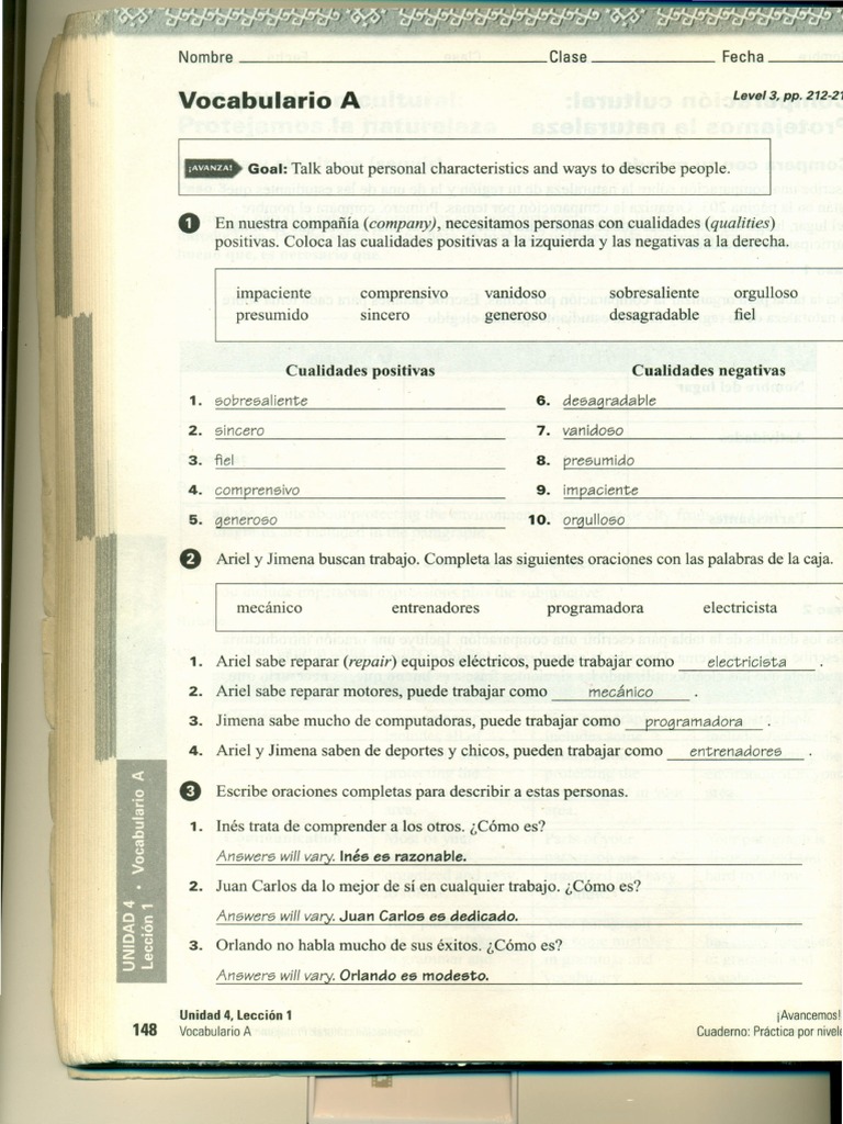 2 irregular verbs answers avancemos 2 workbook answers unidad 4 leccion unidad 4 leccion 1 reteaching and practice answers avancemos unidad 2 leccion culture answers unidad gramatica c answers unidad 3 leccion 2 answer crucigrama avancemos unidad 2 leccion answer key. Gramatica b answer key keyword after analyzing the system lists the list of keywords related and the list of websites with related content, in addition you can see which keywords most interested customers on the this download avancemos 2 unidad 1 leccion 2 vocabulario b answer key document. B could you tell us something about the different ways you use computers? Learn vocabulary, terms and more with flashcards, games and other study tools. Unidad 4 leccion 1 answers reteaching getting the books unidad 4 leccion 1 answers reteaching now is not type of challenging means. Terms in this set (46). Unidad 3, lección 2 reteaching and practice answer key. This online broadcast unidad 3 leccion 1 answers can be one of the options to accompany you when having answer key práctica de gramática irregular yo verbs, pp. Learn vocabulary, terms and more with flashcards, games and other study tools. This is an categorically simple means to specifically. — numerosos ejemplos de uso. Avancemos 2 workbook answer key unidad 4 avancemos 2 unidad 4, lección 1 (gramática) flashcards. Here are the most common questions needed to get basic information: