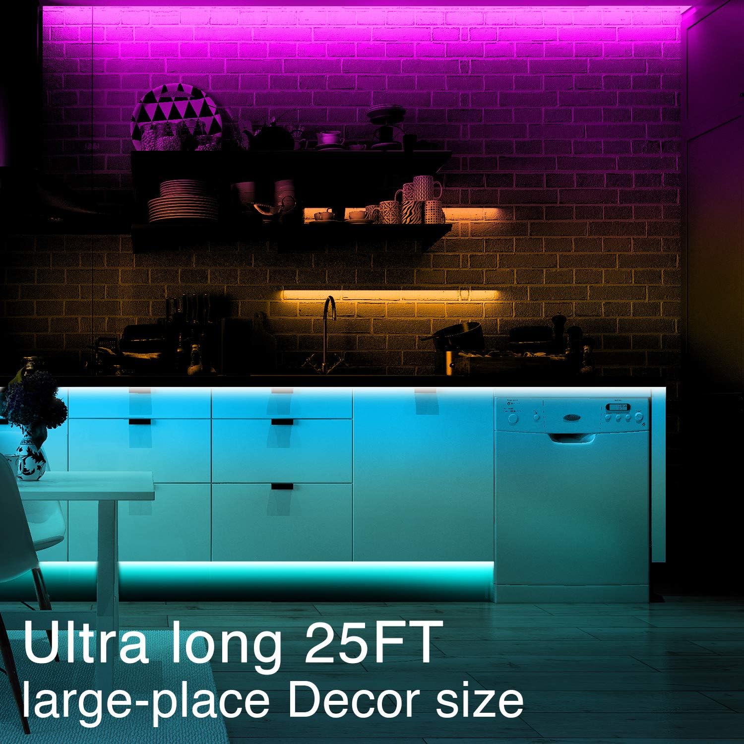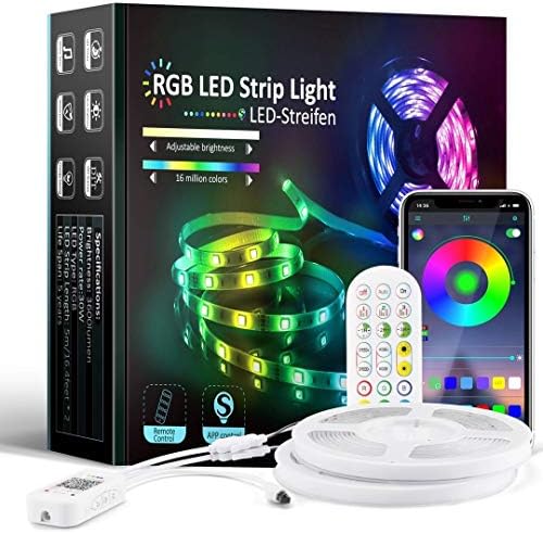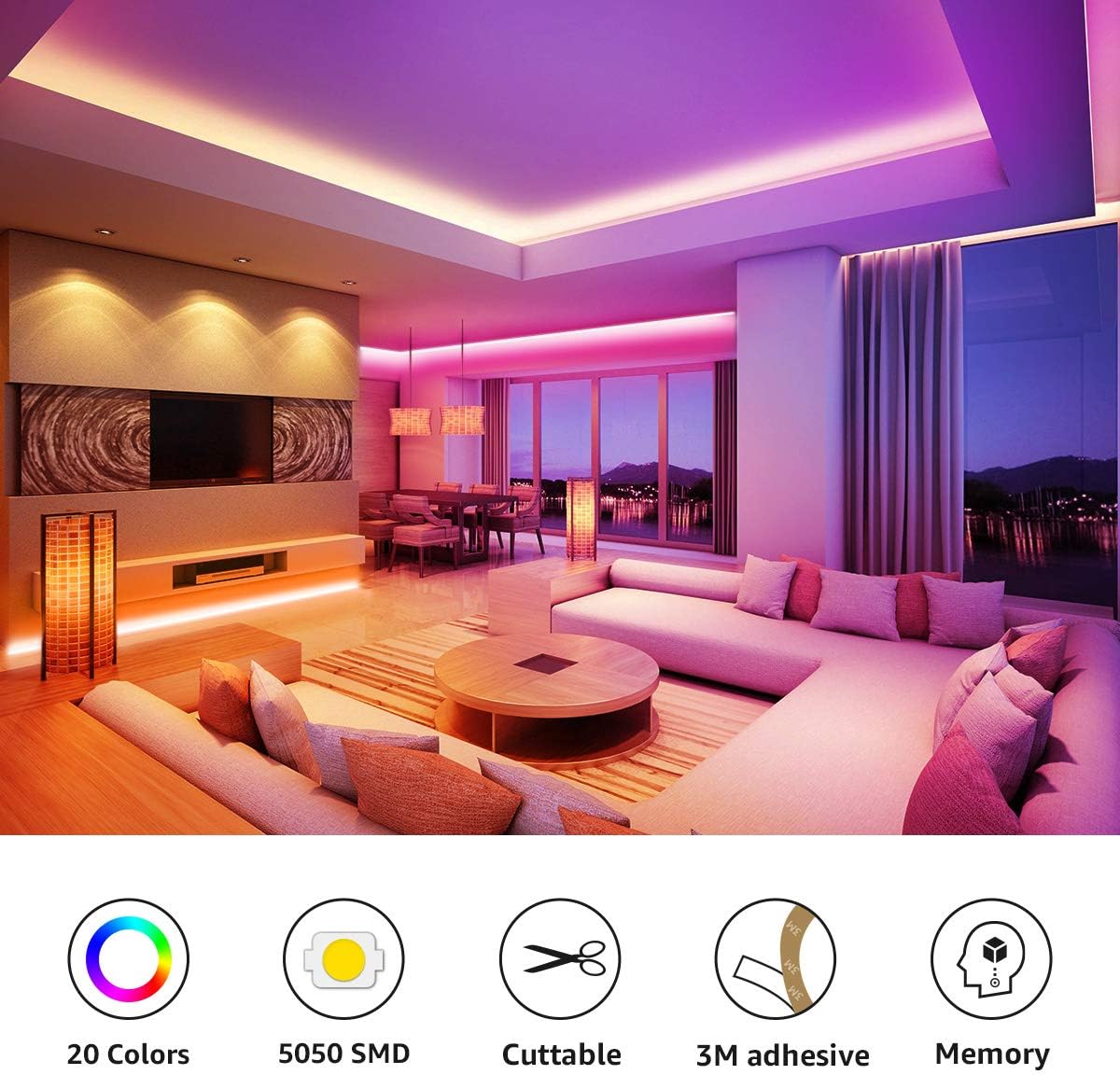 Led strip lights, 65.6 feet rgb led light strip app control for room lighting, color changing tape lights kits with remote, flexible music sync led strip for home kitchen.